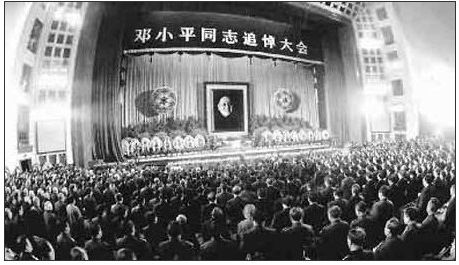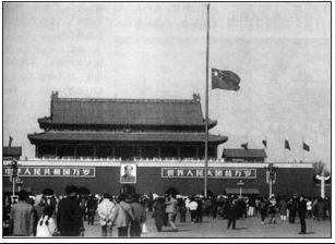 为悼念邓小平同志逝世,首都天安门广场降半旗志哀