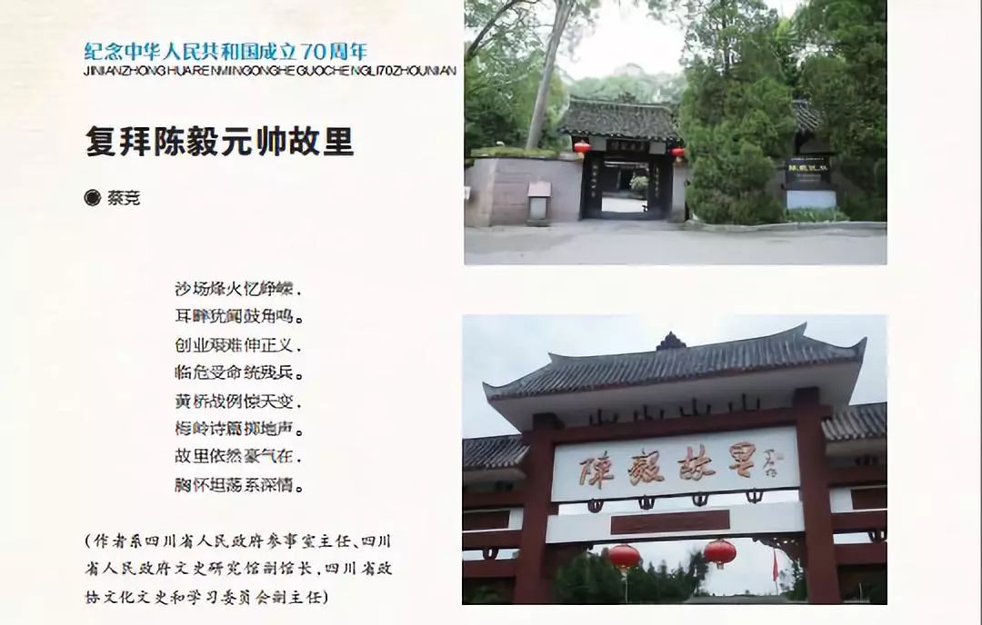 【方志四川•庆祝中华人民共和国成立70周年】蔡竞 ‖ 复拜陈毅元帅故里