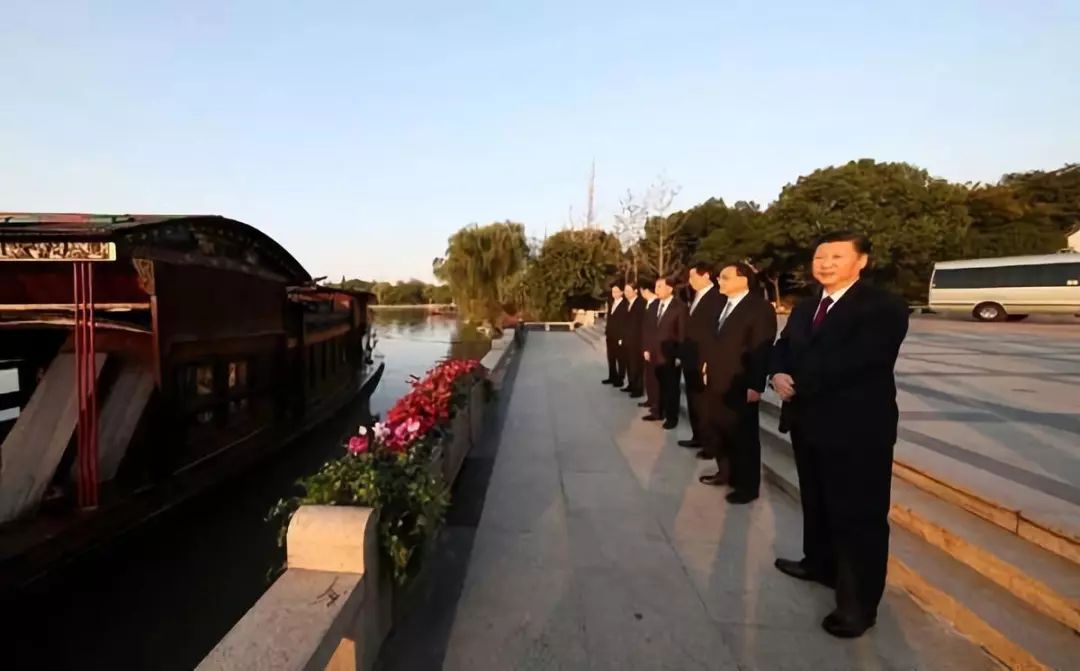 2017年10月31日,习近平总书记等到浙江嘉兴瞻仰南湖红船(图片来源:新华网)