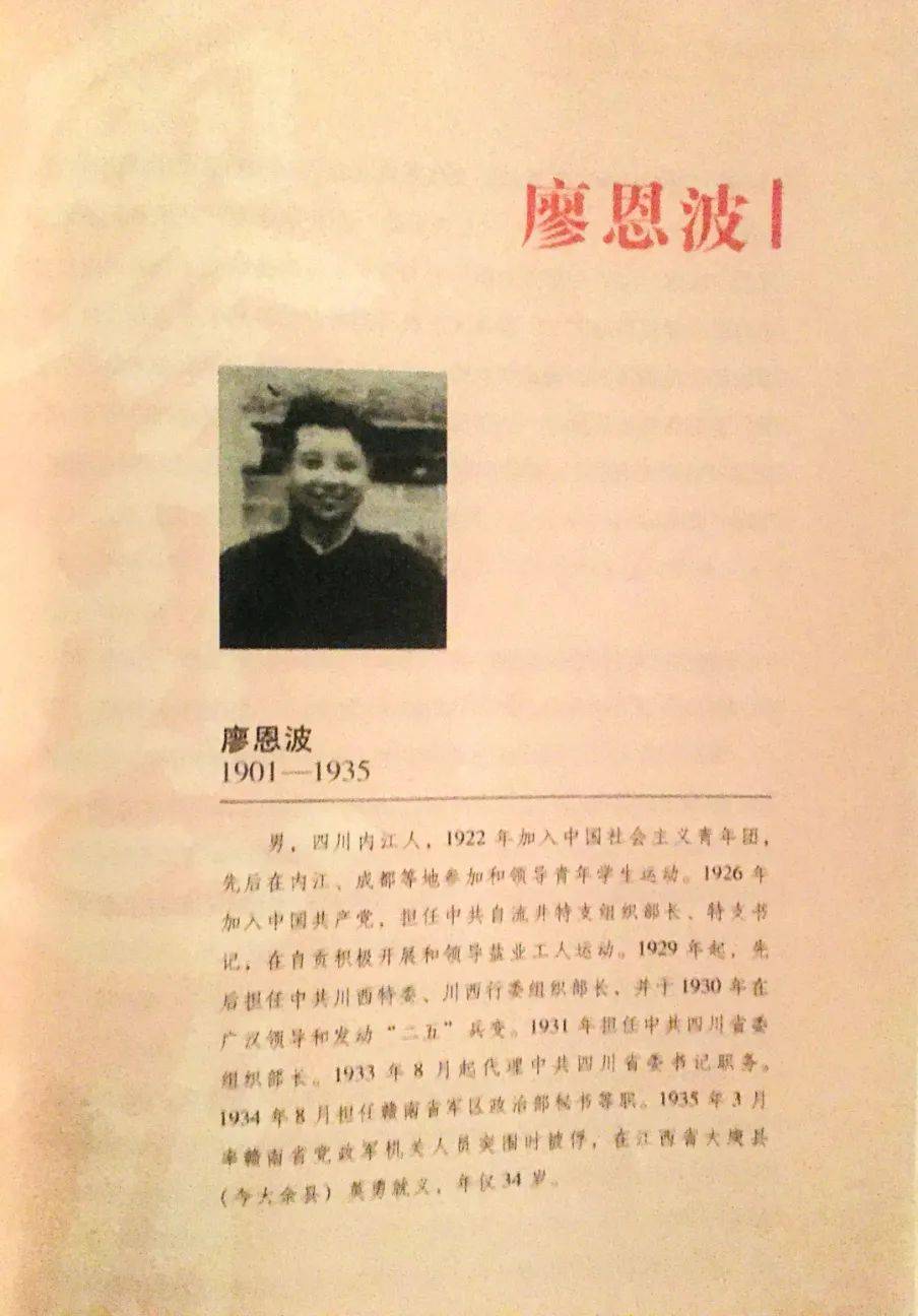 我对此十分重视。回内江后,在与亲人、朋友和以前工作的同事聚会时总会请他们提供这方面的信息,但都像大海捞针那样一无所获。我方知要完成这个任务看似简单,实则很难。大年初二那天,是我家宴请亲人的日子。酒过三巡后,我又提起寻找革命先辈的事。父亲说,“你四叔粟和奎1938年参加共产党,1947年在宜宾高县被国民党军警逮捕后被关进重庆渣滓洞监狱。”我说,“这个我早就知道。”母亲一直对我靠自学考上大学而骄傲,看我对这件事这么认真,就说,“你三姑粟和培早年参加革命,1947年在自贡被捕关在国民党部队的团部,你的父亲花钱打点好不容易才将她营救出来,但她回内江仍然为迎接解放,搞宣传、演《屈原》《林冲》发动群众。”我知道父母的心思,他们是想让我在假期好好休息,以家人在新中国成立前参加革命这件事来交作业。在渠县糖厂工作的姨父廖协群弄清了事情原委后说,“时勇,我讲一个事,你看行不?”他简要地讲了他叔叔廖恩波的故事。我一听,立刻兴奋起来,这无疑是一个重大发现!姨父的头脑清晰、思维敏捷,在随后的几天里,他讲我听,逐渐整理出一则有关廖恩波的故事。