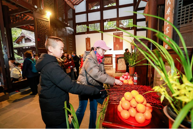 “今天是草堂一年一度的‘人日’祭拜诗圣杜甫仪式,我特意带了孩子来祭拜杜甫。看着孩子认真参与仪式,想来这个仪式会对他有影响和勉励。”成都市民刘先生说。