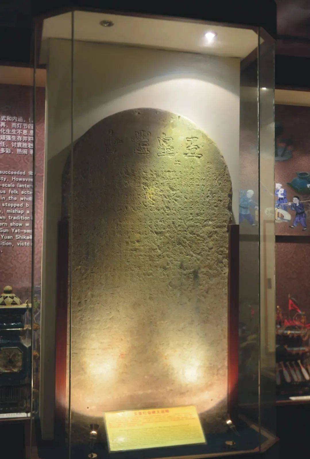 而作为自贡灯会起源的文物史证“五皇灯会”石碑,早年被农民用来做垒猪圈的围板之用。1992年,该石碑被发现,并被中国彩灯博物馆收藏。“五皇灯会”石碑高2.2米,宽1.1米,正面上端题额刻有“五皇灯会”四字,背面刻有“天灯碑”三字,因年代久远,其它碑文已模糊不清,依稀可见部分捐款人的名字,甚为遗憾。