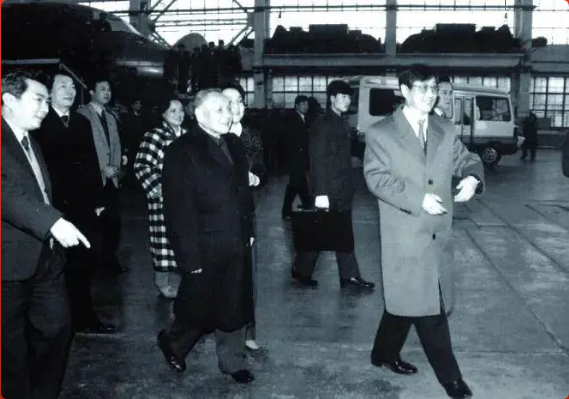 1991年1月31日,邓小平视察上海航空工业公司上海飞机制造厂大场分厂。