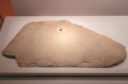 石磬,通过敲击可以发出乐音。图为藏于成都金沙遗址博物馆的晚商至西周石磐。