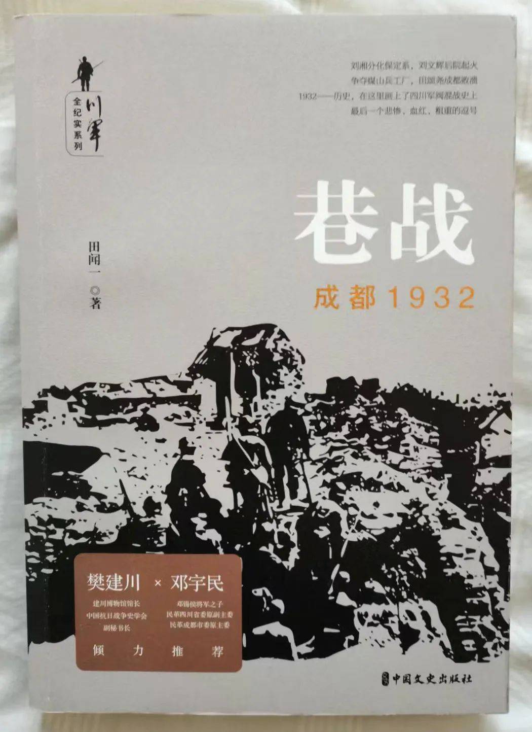田闻一:是的,“川军全纪实系列”目前已经开印,春节前后将正式投入市场。这是由中国文史出版社推出的我的第一个系列套书,一共5本,包括《大都督 川军鼻祖尹昌衡》《鏖战 蜀中群雄往事》《巷战 成都1932》《混战 争霸巴蜀》《血战 川军出征》。这5本关于民国时期四川军阀的历史小说,是根据传闻、史料、地名和建筑遗迹、遗存以及考证采访,再以文学手法创作出的一段地域历史故事。有评论家认为,这是对四川民国时代进行的“正史演义式”历史叙述,是作家对地域重大事件的历史文学造影。