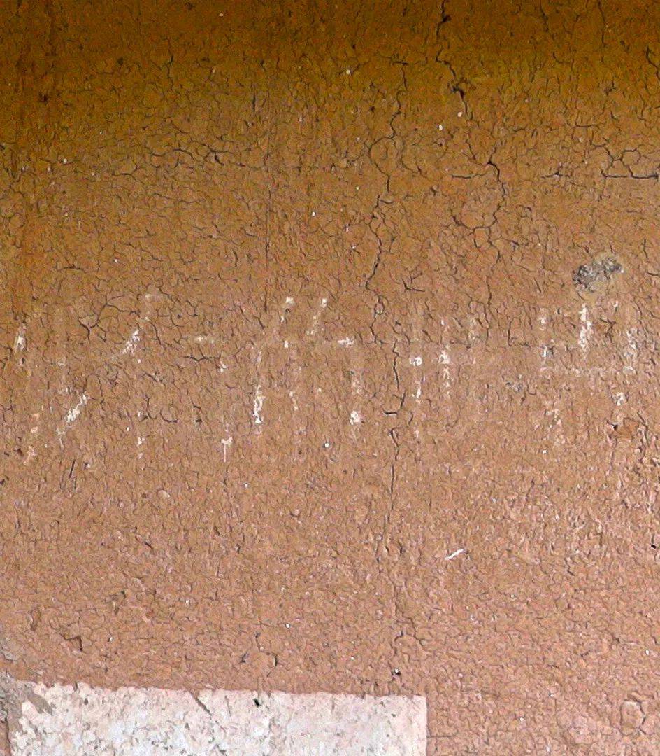 笔者当年书写在仓房土墙上的标语(局部),至今依稀可辨。标语全句:用我们的双手艰苦奋斗,改变我们的世界,将我们现在还很落后的乡村建设成为一个繁荣昌盛的乐园。