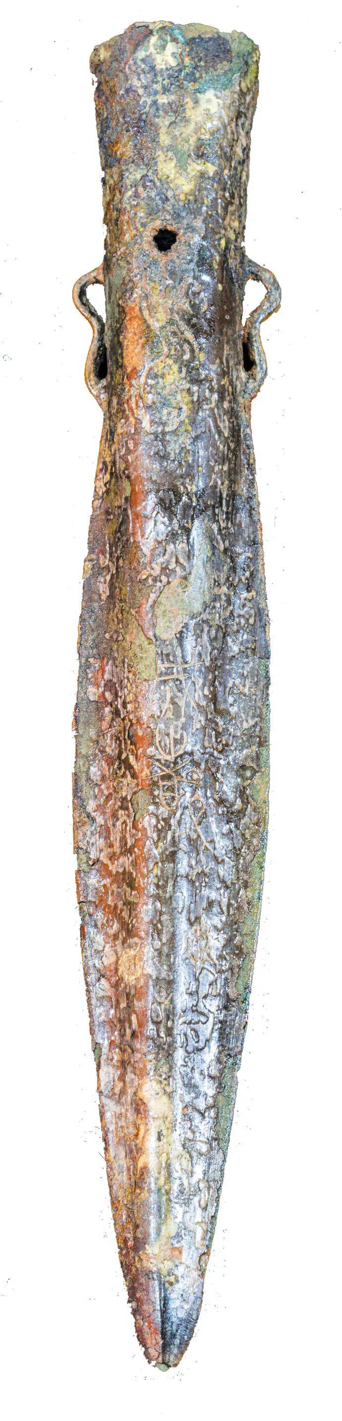 蒲江县飞虎村大型船棺葬墓地出土的“成都矛”(图源:成都日报)