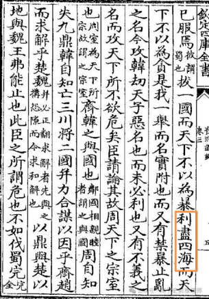 这里的关键是,司马错在表达要将蜀国搜刮一空的时候,用的是“利尽四海”一语,这里的“四海”非常明确就是指代的蜀地。