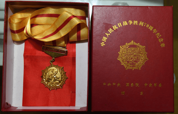 1945年8月15日,我随部开往武汉接受日伪军投降,在伟大的抗日战争中,我获抗战胜利勋章一枚。