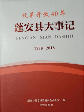 2018年庆祝改革开放40年之际,启动《改革开放40年蓬安县大事记(1978—2018)》编辑工作,2019年12月完成编辑出版(全书18万字,成都天金浩印务有限公司印刷)。