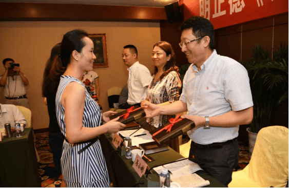 2016年7月20日,蓬安县举行明正德《蓬州志》点校发行座谈会,省地方志办党组书记、主任马小彬(右一)、县委副书记、代县长崔竹君(右二)向参会人员赠送明正德《蓬州志》。