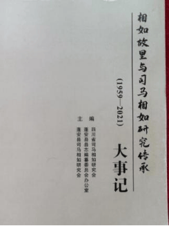 2022年4月至2022年12月,县志办与四川省司马相如研究会共同编辑了《相如故里与司马相如研究传承大事记(1959—2021)》。该书彩图98幅,26万字,由北京燕山出版社出版发行。