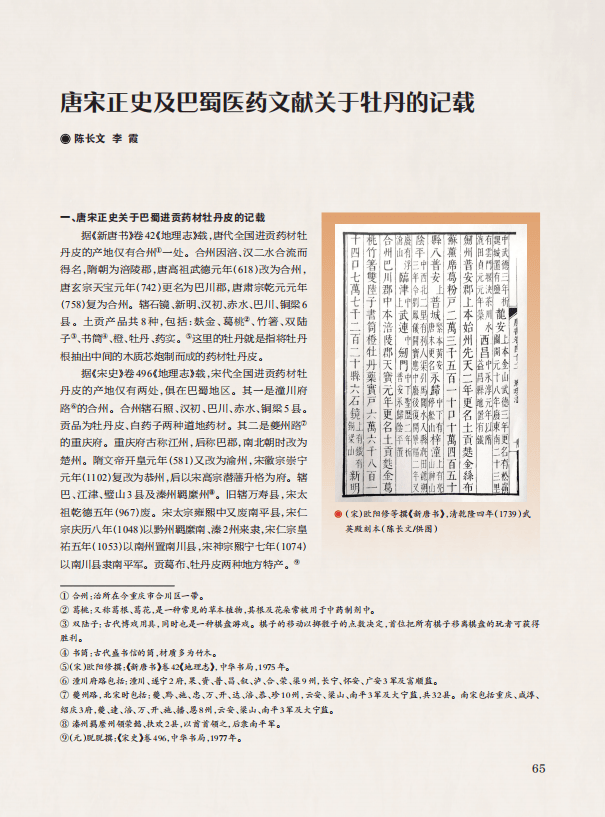 【历史文化】唐宋正史及巴蜀医药文献关于牡丹的记载