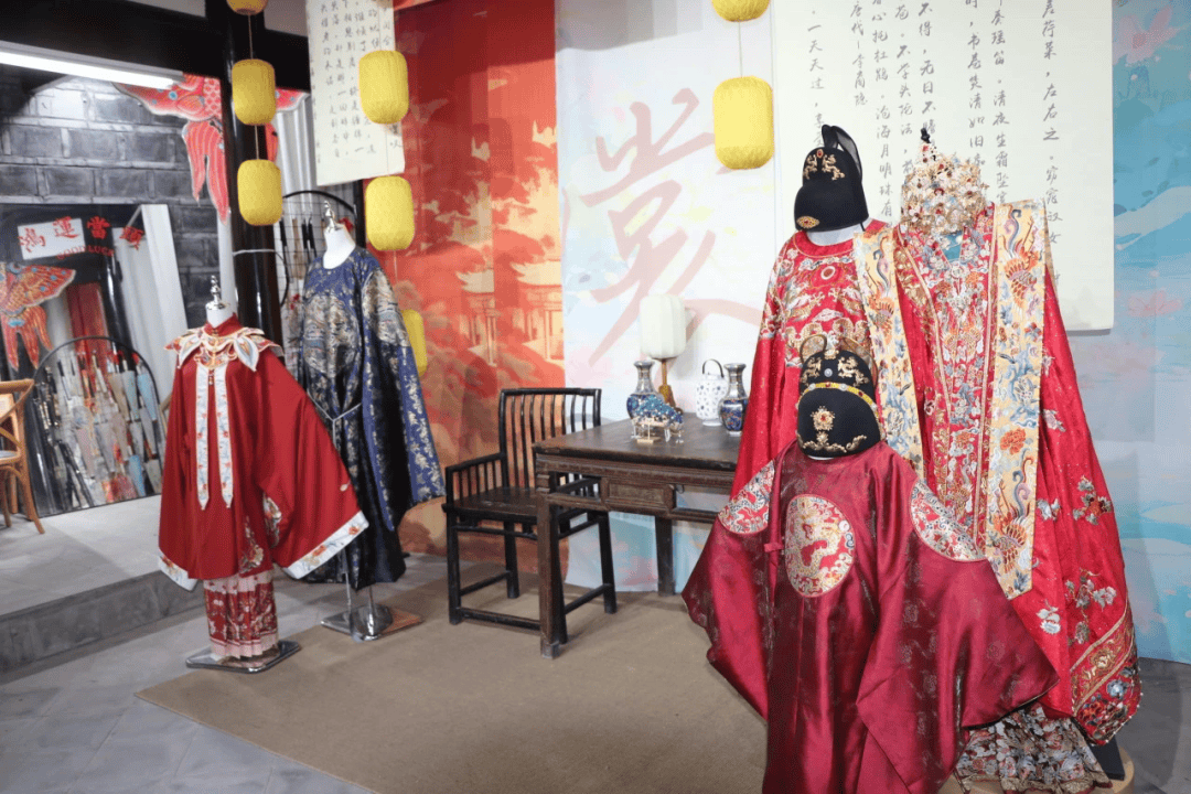 翰林书院内的汉服体验与品茗区(图源:红色战旗、幸福唐昌)