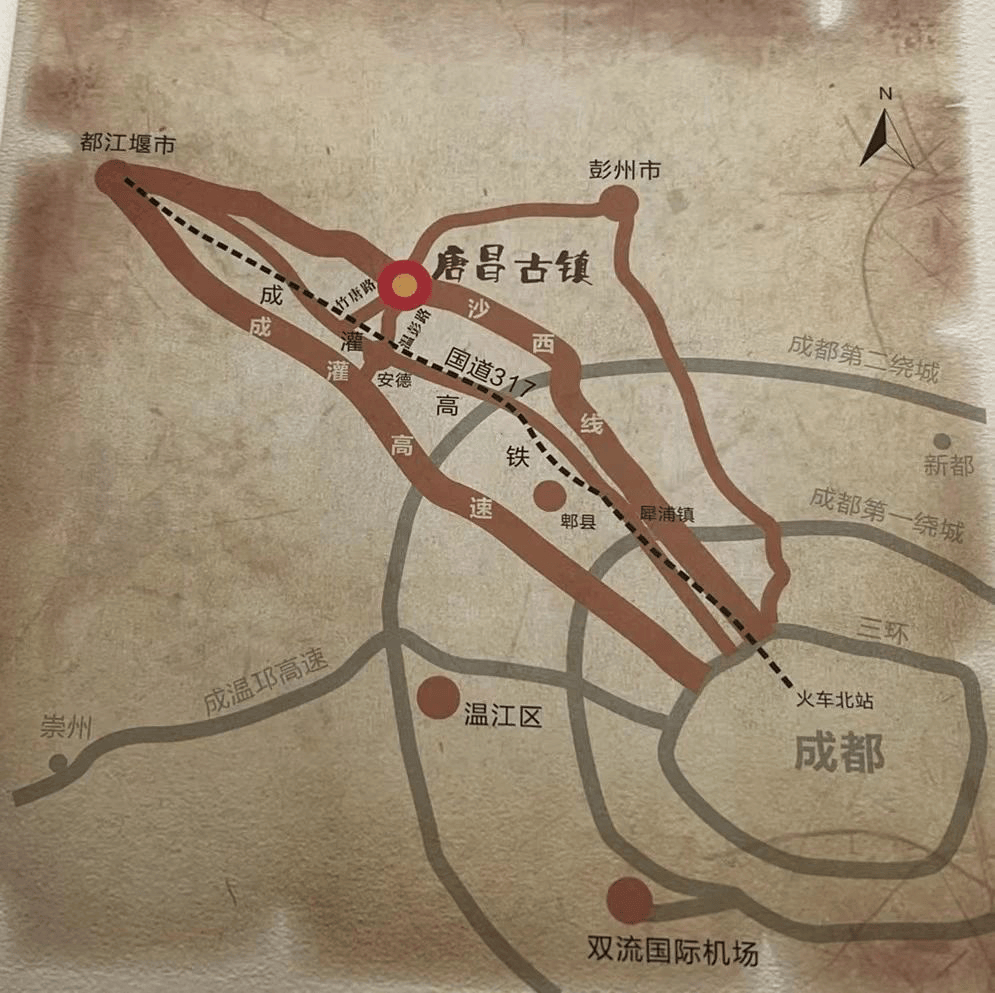 地理区位的特殊性与自然经济的繁荣,共同铸就了唐昌“商贸重镇”的地位。此地自古便是彭县、灌县通往川西高原乃至西藏的必经之路,凭借得天独厚的交通优势,成为重要的商贸枢纽。