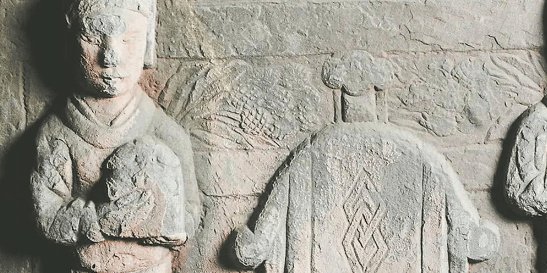 荔枝的形神更被镌入器物,成为解码历史的密语。合江的南宋“高浮雕二侍女”石刻中,两侍女背后,有一串带叶的荔枝果实,一枝挂一果,果实聚为一簇,荔枝表皮的鳞斑状明显,栩栩如生,印证着当时川南荔枝栽培的普及。