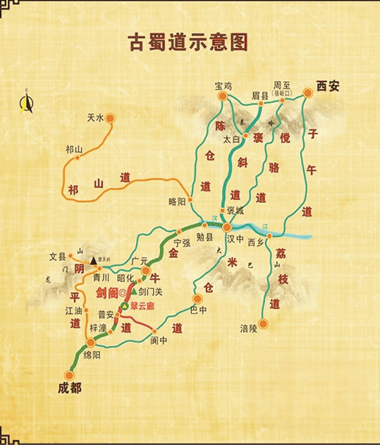 古蜀道示意图,最东端即为荔枝道(图据新华社)