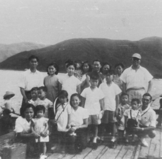 朱枫(后排中)与爱子朱明(靠前站立者)在香港留影