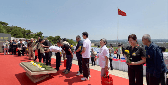 伴随着低沉哀婉的《献花曲》,人们手持鲜花,缓步走到纪念坛前,俯身献花,鞠躬致敬,表达对革命先烈的深切怀念与无限哀思。