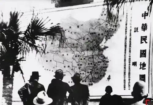 台湾光复后,台北市街头挂出巨幅中国地图,向饱受日本军国殖民统治的广大台湾民众介绍祖国大陆的地理区划。