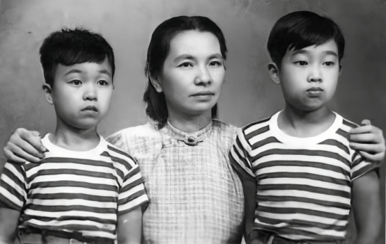 赴台湾前,朱枫与儿朱明(左)、侄朱晖离别时合影于香港。