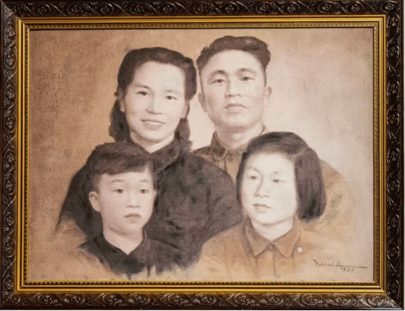 朱晓光请人用朱枫最后从香港寄回的照片画出全家福(朱枫、朱晓光、朱明、朱晓枫)