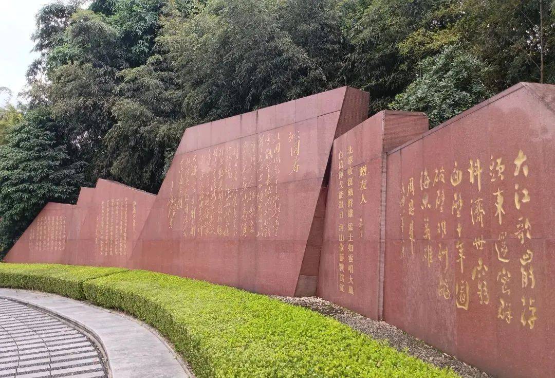 “源泉”右边红色诗墙上,依次镌刻有鲁迅、闻一多、邓中夏、孙文、于右任、李大钊、毛泽东、周恩来、朱德、陈毅、叶剑英民主革命先驱、革命家诗人的诗歌。他们用诗歌再现了波澜壮阔的中国民主革命的历程。