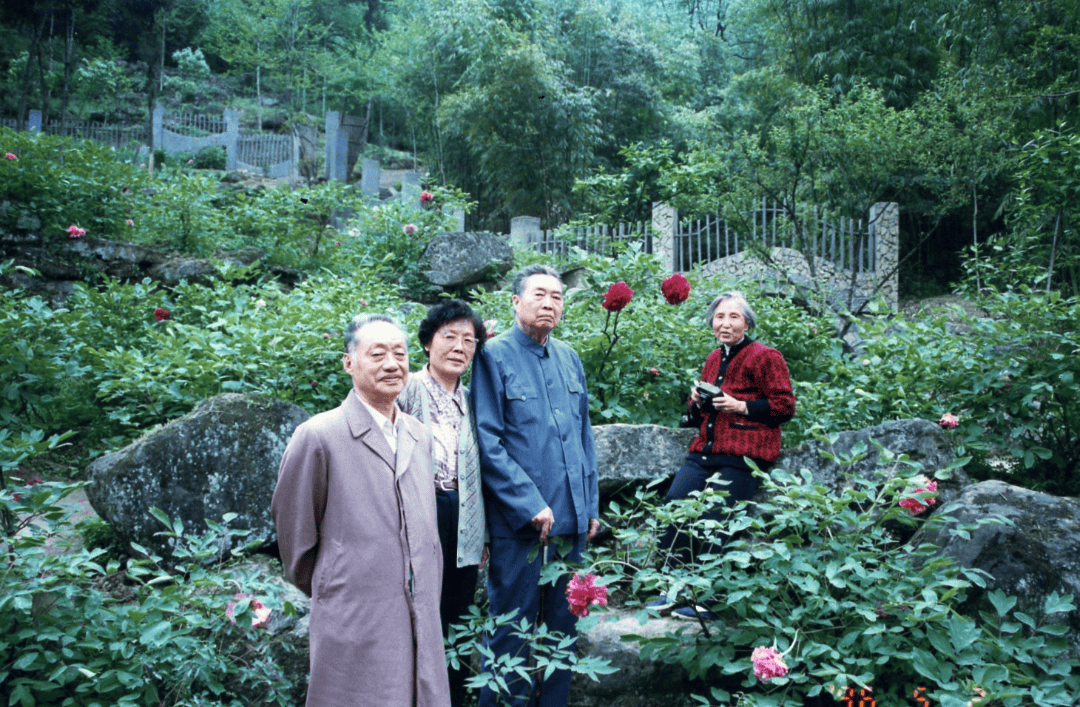 1995年,高风与夫人唐智儒陪同原四川省委书记杨超和夫人罗迭在四川彭州丹景山欣赏牡丹花。