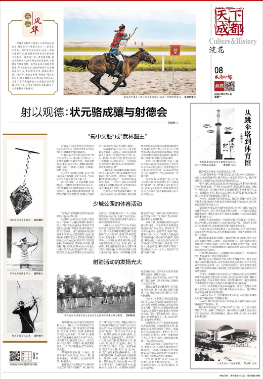 即将在成都举行的第十二届世界运动会上,射箭是34个赛事大项之一。射箭在中国是一项非常古老的运动,也是一种融合军事训练、道德教化与政治礼仪的独特文化体系。清代四川唯一状元骆成骧,虽是典型的文人,晚年却力倡尚武精神,与射箭结下深厚渊源。他不仅在家中后院专设箭道,每日清晨习射,更强调射箭不仅是御敌强身之术,更是陶冶性情、培养品德之道。1925年,他亲自筹建“射德会”并任首任会长,骆成骧以状元之尊推动射箭运动,其意义在于突破传统文人轻视武备的局限,改变了士人“文弱”的刻板形象,彰显了文武兼修的民族精神。