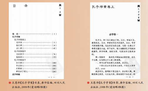 自余记孔子之言行学说者,有《论语》《孔子家语》《孔子集语》诸书,及《史记·孔子世家》。于中《家语》伪作,《集语》乃清人杂采诸子百家之言而糅合之者。少年皆曾一读,病其驳杂不纯,不足以尊显圣学,反而乱之,是以不取……今之学案,释经义皆采自该疏而加以条贯系统。故能事半功倍,而早日告成。为时共三十日,共十余万言。集中心力以为之也。