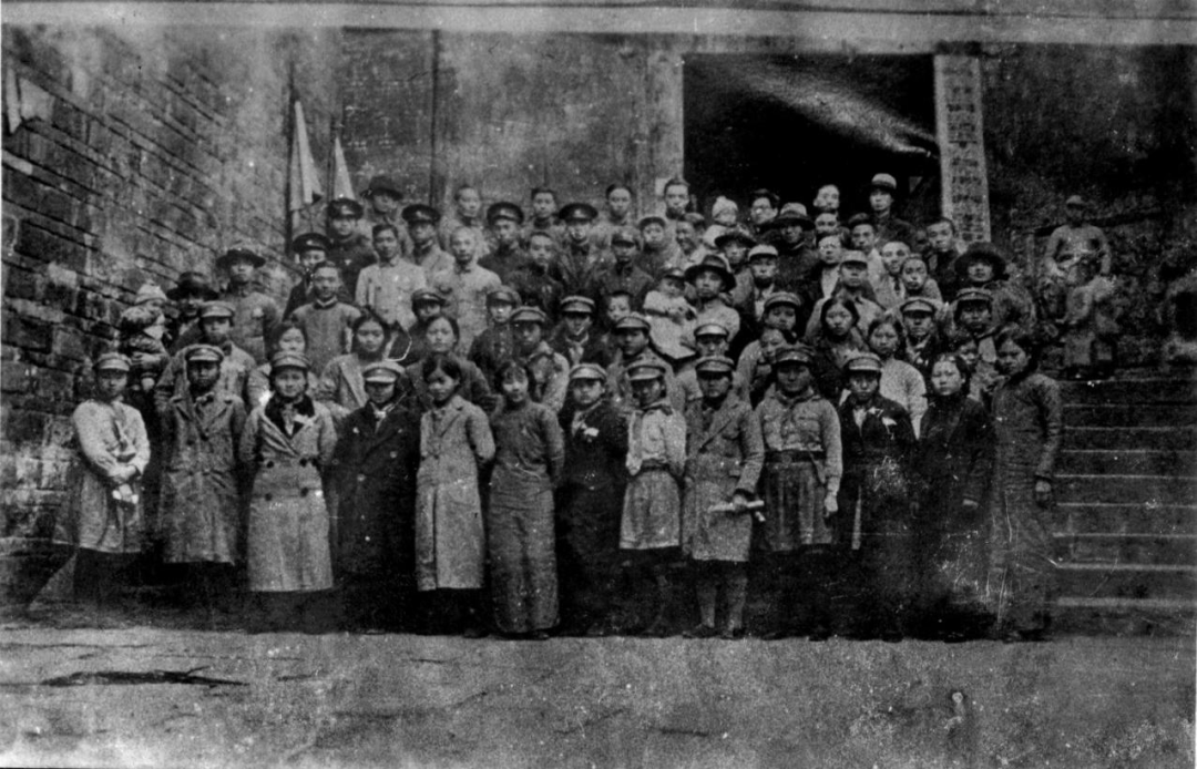 1938年4月,自贡市抗敌歌咏话剧团成立时合影。