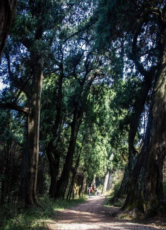 弘治十一(1498)年春,进士出身的刑部员外郎彭泽赴云南办差路过,前往拜谒黄裳墓时,发现上年为修王府砍伐的大树200株被截断堆放道旁,这时候王府已经建成,彭泽感慨不已,作《吊宰木赋》以吊之,宰木就是墓地的树木。十多年后的正德年间,已是朝廷要员的彭泽督师川东北镇压席卷川陕鄂的蓝鄢之乱,传檄剑州整修黄裳祠墓。在全州感受过种松好处的剑州知州李璧修葺了黄裳墓,考虑到元泰定年间误将武连作为魏征出生地而以其谥号命名文贞书院,建州学时不用旧名,而用黄裳的号兼山为书院命名,并请彭泽为兼山书院撰写碑记。那时梓潼县、思依一带属剑州辖地,李璧顺势开始了北连昭化、西至梓潼、南接阆中“三百长程十万树”流芳百世的壮举。不过,李璧的功劳更在护柏上,一是发布“官民相禁剪伐”命令。应该划出了线路、确定了范围,这是关键之举,朝中有强人支持,民间又有需要,皇朝虽然强势总归还是讲道理的,后面就算再建王府也不好打蜀道古树的主意了。话虽如此,100多年后的万历年间还是“量采剑道植柏”,就是根据需要采伐了一定数量的蜀道古柏,用来补修剑州文庙。二是整修官道。“以石砌路”类似现在给古树砌堡坎、扎围栏,保护古柏生长环境。三是植柏。这点上,历代进行的补植有积极意义,但对形成翠云廊的作用不应放大,剑阁气候土壤适宜柏树生长,加以保护即具规模,民间亦视古树为灵异,不会轻易砍伐,“剑道植柏,盖武缘李公遗荫”“古柏数万株,为璧所植”属于功归冕旒,习惯上把功劳记到代表人物头上。要是植柏真很管用,正德年间至今已500多年,虽说文林铺、罐儿铺这一线山脊土壤瘠薄,但罐儿铺以南白龙河河谷土层厚,思依一线土壤条件很好,就算人烟稠密情况下耕作影响柏树生长和盗伐行为不可避免同样是重要因素,行道柏也不至于完全消失。现在,没有古树作路标,人们还能从双柏树、松林塘、大柏梁、木林塘等地名估计驿道走向。抖音博主蜀道山人说,木兰镇河楼场后神天窝有棵古柏原来叫七丫柏,被砍了枝丫后现在叫五丫柏,但又说没挂保护编号的牌子,不知道这棵树是否位于驿道边上,如在翠云廊南线古柏的数量就可以增加了。这树之所以能保留下来,大概是有点树影婆娑,不适合作栋梁之材,没入保宁府同知们的法眼,得以幸存下来。