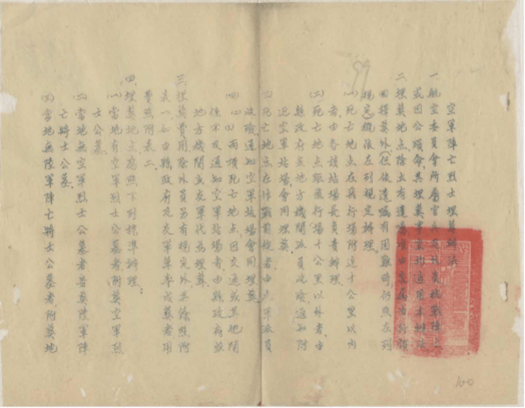 《空军阵亡烈士埋葬办法》(四川省档案馆 供图)
