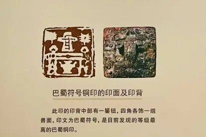 在此墓中出土的大量精美文物中,有一颗巴蜀符号铜印最为瞩目,四川博物院称其为“是目前发现的等级最高的巴蜀铜印”,被认为是战国时期古蜀王生前使用的印玺。四川博物院对这颗等级最高的巴蜀铜印描述是:“这枚印章呈正方形,边长约为3.5厘米,高1.4厘米。印背中心置有桥形钮,钮两侧对称雕刻着浅浮雕饕餮纹,展现出庄重而神秘的气息。”“再来看印章的印面。与我们平常见到的印章不同,这枚印章印面雕刻的并非文字,而是一组神秘的图形符号——下部两侧各立一人,光头大耳,伸手相握,手下置一罍(léi);两人上方各有一口向上的铎(duó),中间则有一网格状的图像符号。”这颗铜印的出土地,成都市新都区马家战国王级大墓,距成都市成华区羊子山古蜀祭祀台也就是“成台”的直线距离,不超过20公里。