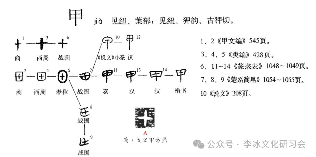 四川博物院称之为“网格状的图像符号”,其实为“甲”,是一件解下来、展开放置的皮质铠甲。“网格状的图像符号”总体呈“十”字造型,《说文解字》云:“古文甲,始于十。”“甲”在商代甲骨文到战国金文时期都写作“十”。“甲”通常被认为是象形字,最早的铠甲是将牛皮之类的皮革,裁剪成一块块皮革片,然后在片上穿孔,用绳串联后编成铠甲。甲片之间呈一个个“十”字形。林义光《文源》云:“甲者皮开裂也,十象其裂文。”基本上也是这个意思。总体呈十(甲)字造型的“网格状的图像符号”上也布满了一个个皮质甲片之间形成的“十”字型,因此是为铠甲之意,将其解下来展开放置,应为解甲休战,也是表达和平之意。据此可以推测甲两边的两口铎,应为象征鸣金收兵的“金铎”。