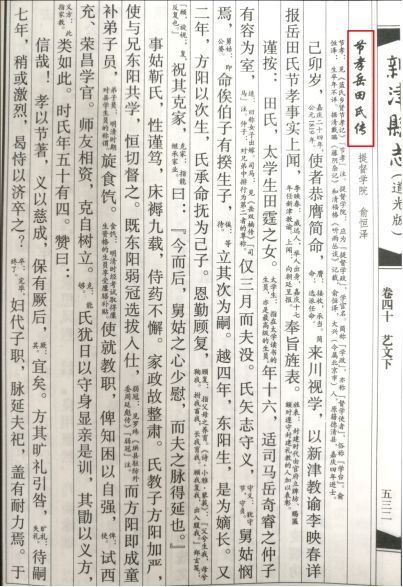 嘉庆二十四年,四川学政俞恒泽来新津,奉旨对新津长乐乡金华场乡绅岳奇睿的儿媳妇田氏进行旌表。