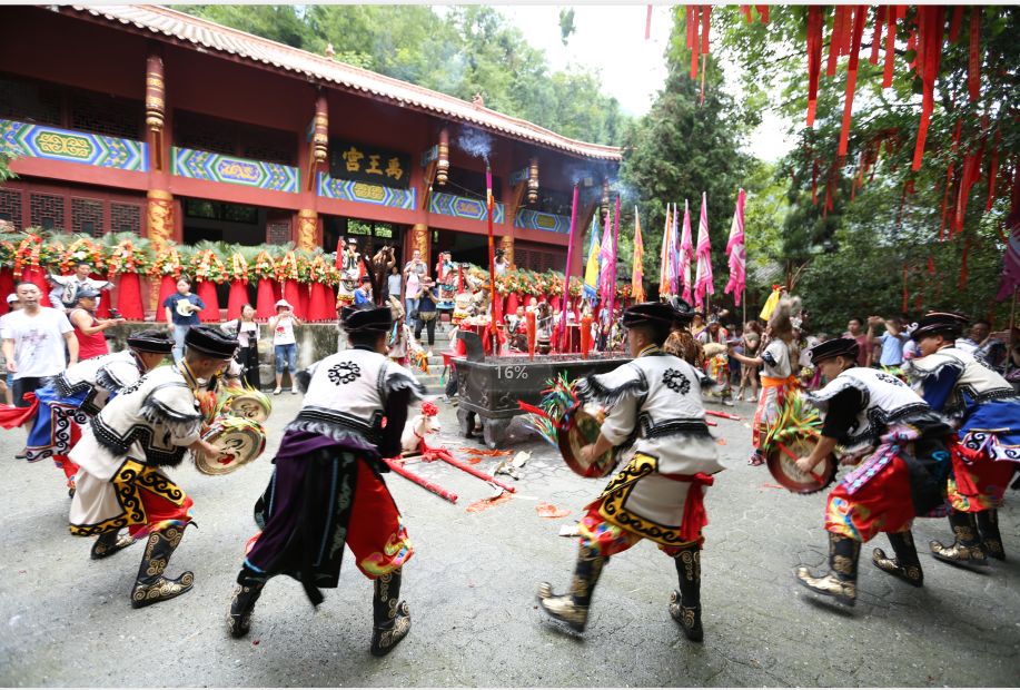 2018年7月18日,农历六月初六,北川禹王广场,北川羌族自治县羌族儿女举行大禹诞辰4145周年祭祀活动(王金虎 摄,图片来源:西部经济网)