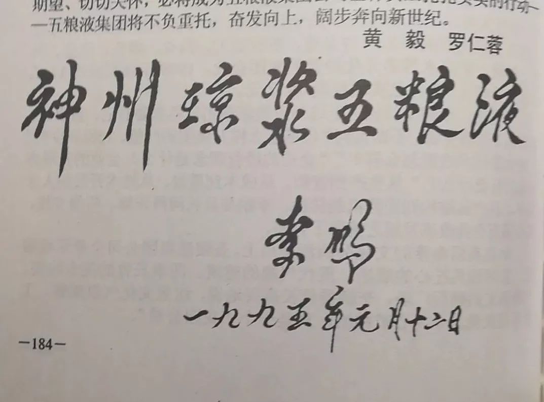 1995年1月,时任国务院总理李鹏题词:神州琼浆五粮液(宜宾市地方志办公室 供图)