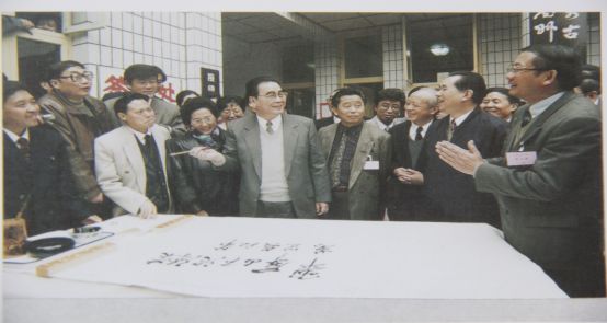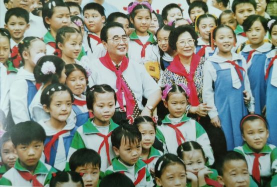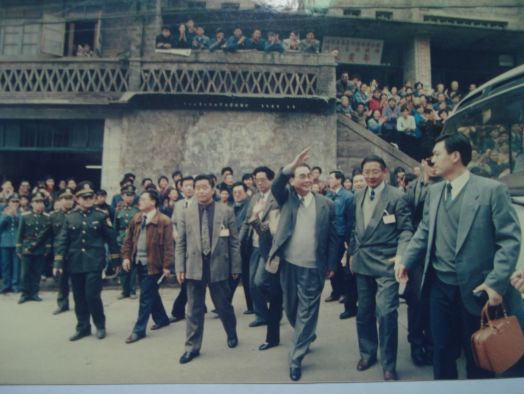 1994年12月9日,李鹏总理在高县庆符镇向闻讯赶来的乡亲们挥手。庆符镇东门街是李硕勋烈士出生地,总理及夫人急步来到这里,穿行在故里小巷,不时停下步子向乡亲们问寒问暖。