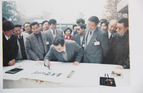 1994年12月9日,在高县庆符镇,李鹏总理走进李硕勋纪念馆,认真听取解说员介绍烈士生平事迹,仔细观看、辨认照片上的人和物。参观完毕,李鹏总理应地、县领导请求,欣然命笔,即兴题诗:“翠屏山下波涛滚,万里长江第一城。云雾山径归故里,符江河畔望兴盛”。诗里包含着总理浓浓乡情,表达了对家乡建设的关心和殷切希望。顿时,周围人群爆发出一阵热烈的掌声,由衷感谢总理对家乡的深情厚义。