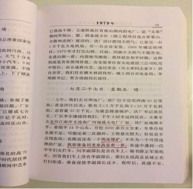 图为《电力要先行―李鹏电力日记》1979年7月27日记述内容
