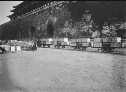 央视大型纪录片《故宫》还原了当时文物离京的情景:1933年2月5日晚间,北平全城戒严,故宫博物院的13491箱文物从神武门广场出发,由几十辆板车轮流运往火车站。军队全城护送,沿途军警林立,板车在熟悉的街道上行驶,街上空无一人,除了车子疾驰的辘辘声之外,听不到一点别的声音……