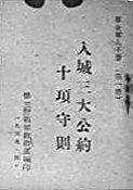 早在1949年2月,三野南下到达徐州东北的贾汪不久,陈毅就找到时任司令部城市政策组组长曹漫之,要他组织起草三野入城公约和守则。陈毅说,自古以来,军队进入城内,住进民房,干好事的不多。我们很快就要进入南京、上海、杭州等大城市,那里的老百姓受国民党反动宣传的影响,对我军很不了解。我们进城以后,一定要严守纪律,给他们一个好的“见面礼”。因为老百姓接触我们,首先注意的是军队的纪律,所以,入城纪律是入城政策的前奏,入城纪律搞不好,以后影响很难挽回。你要好好把这份文件起草好,提请总前委领导讨论。曹漫之记录完陈毅的指示,刚转身离去,陈毅又把他叫回来,专门交代说,你去找些历史书查一查,看上面有没有军队“不入民宅”这句话,作为我们起草文件的参考。