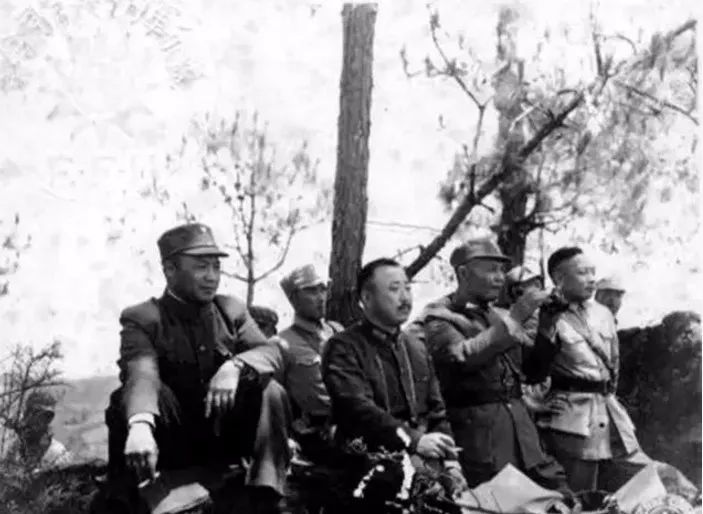 1944年5月,远征军司令长官卫立煌与肖毅肃(未戴军帽者)在怒江东岸山头观察日军阵地(图片来源:“历史研究”微信公众号)
