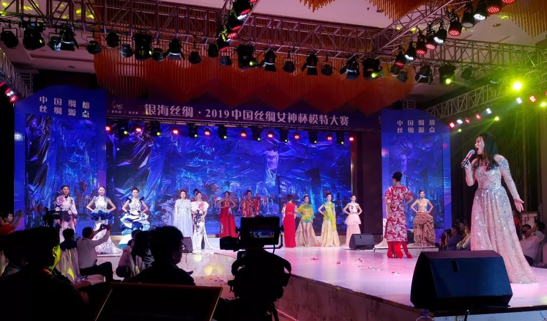 2019年9月16日晚,全总文工团独唱演员、南充籍青年歌手张薇在2019中国丝绸女神杯模特大赛总决赛上演唱《一杯美酒》《恩情如花》(蓬州闲士 摄)