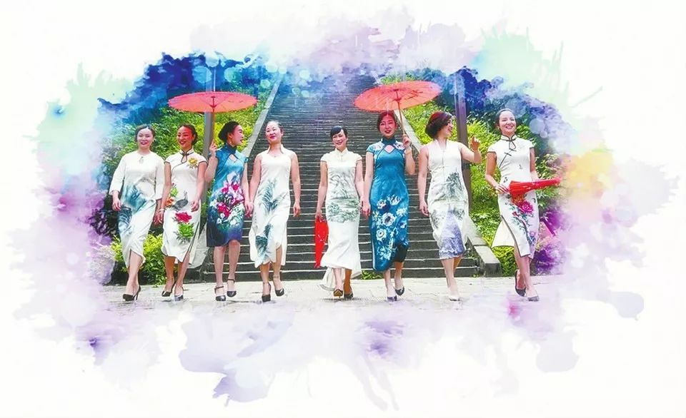 穿着蜀绘旗袍走秀(张瀚誉 摄,图片来源:华西都市报)