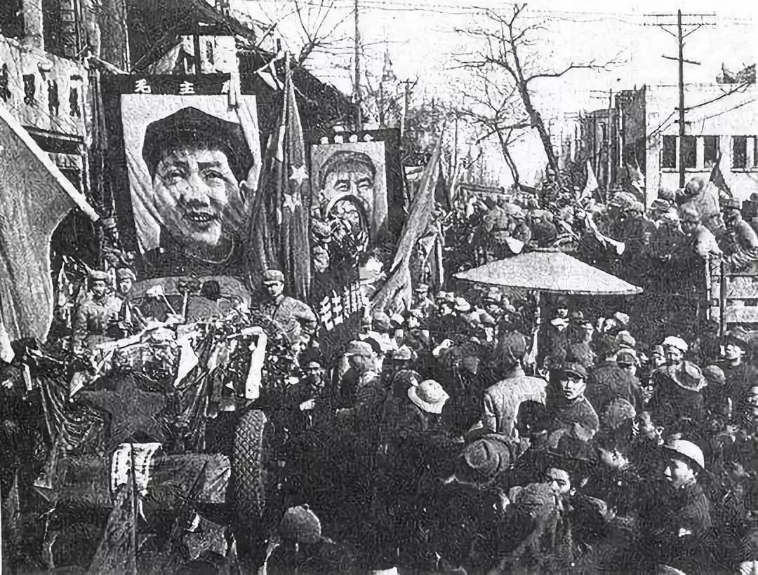 从12月30日上午9时一直到下午4时,解放军入城的各路行列一直在欢迎人群中缓缓移动。直到黄昏,这座千年古城还在沸腾中。