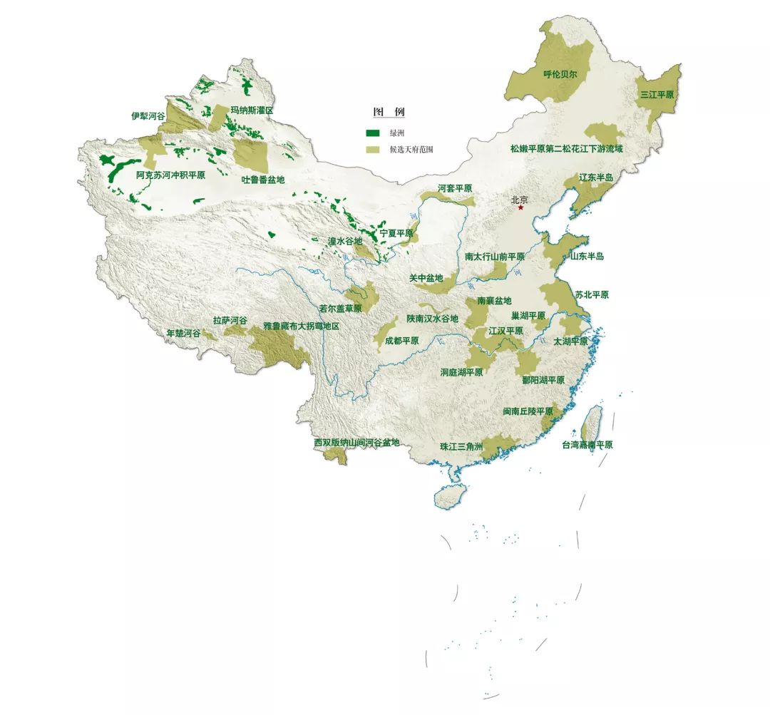 ◎ 中国的富饶之地分布示意图,图自《中国国家地理》2008年2月