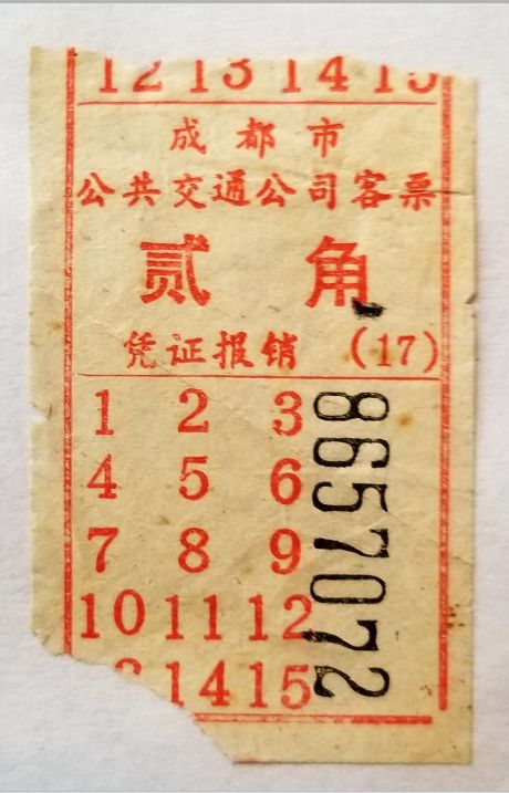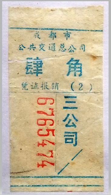 成都市公交公司壹角贰分车票(童华池收藏并拍摄)