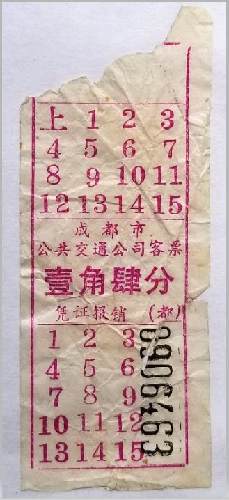 成都市公交公司壹角肆分车票(童华池收藏并拍摄)